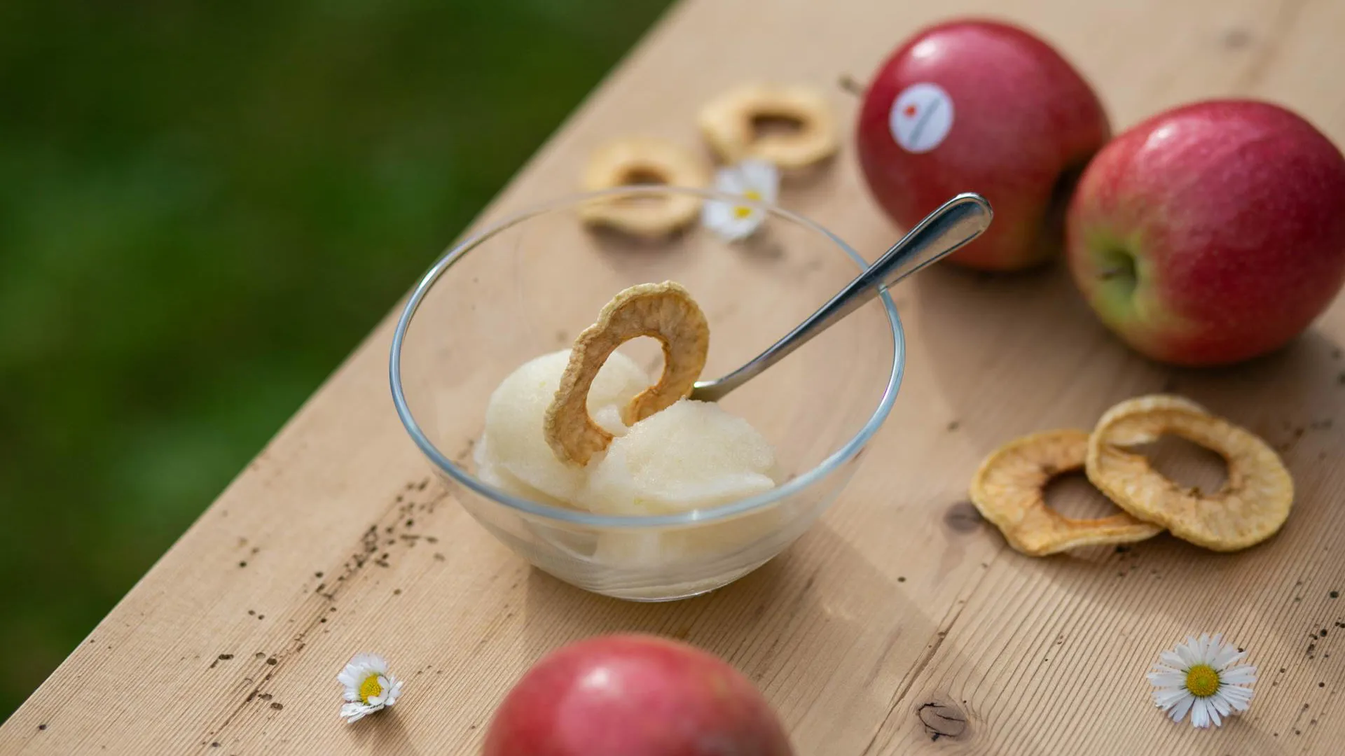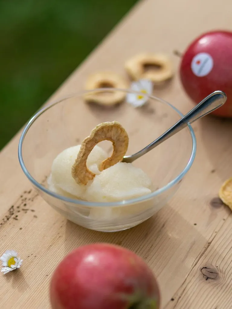 Bio-Bauer Maximilian serviert: Apfelsorbet.