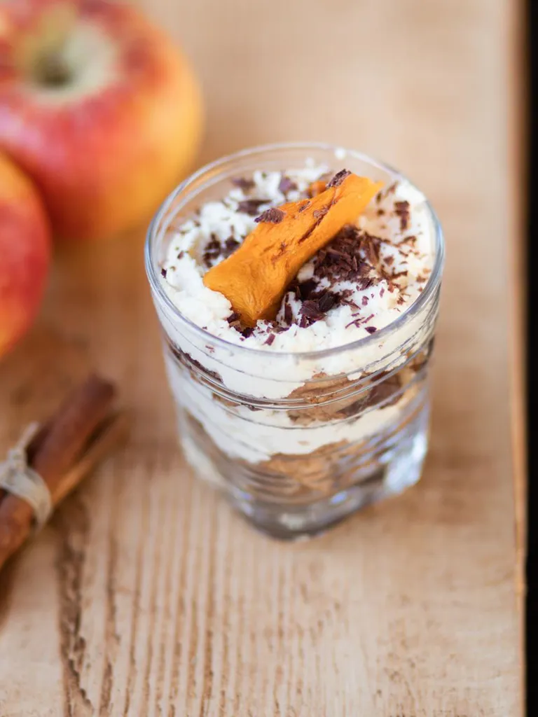 Nachspeise - 20 Minuten - LeichtBio-Bäuerin Johanna serviert: Apfel-Tiramisù im Glas.zum Rezept