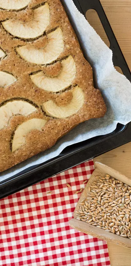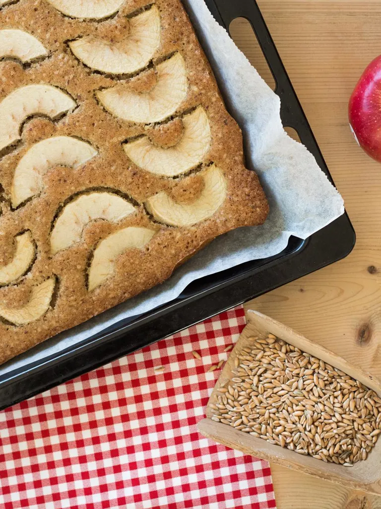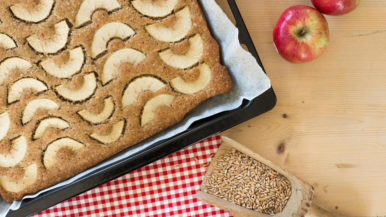 Bio-Bäuerin Rosi serviert: Blech-Apfelkuchen aus Dinkelmehl.