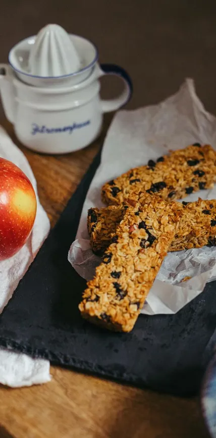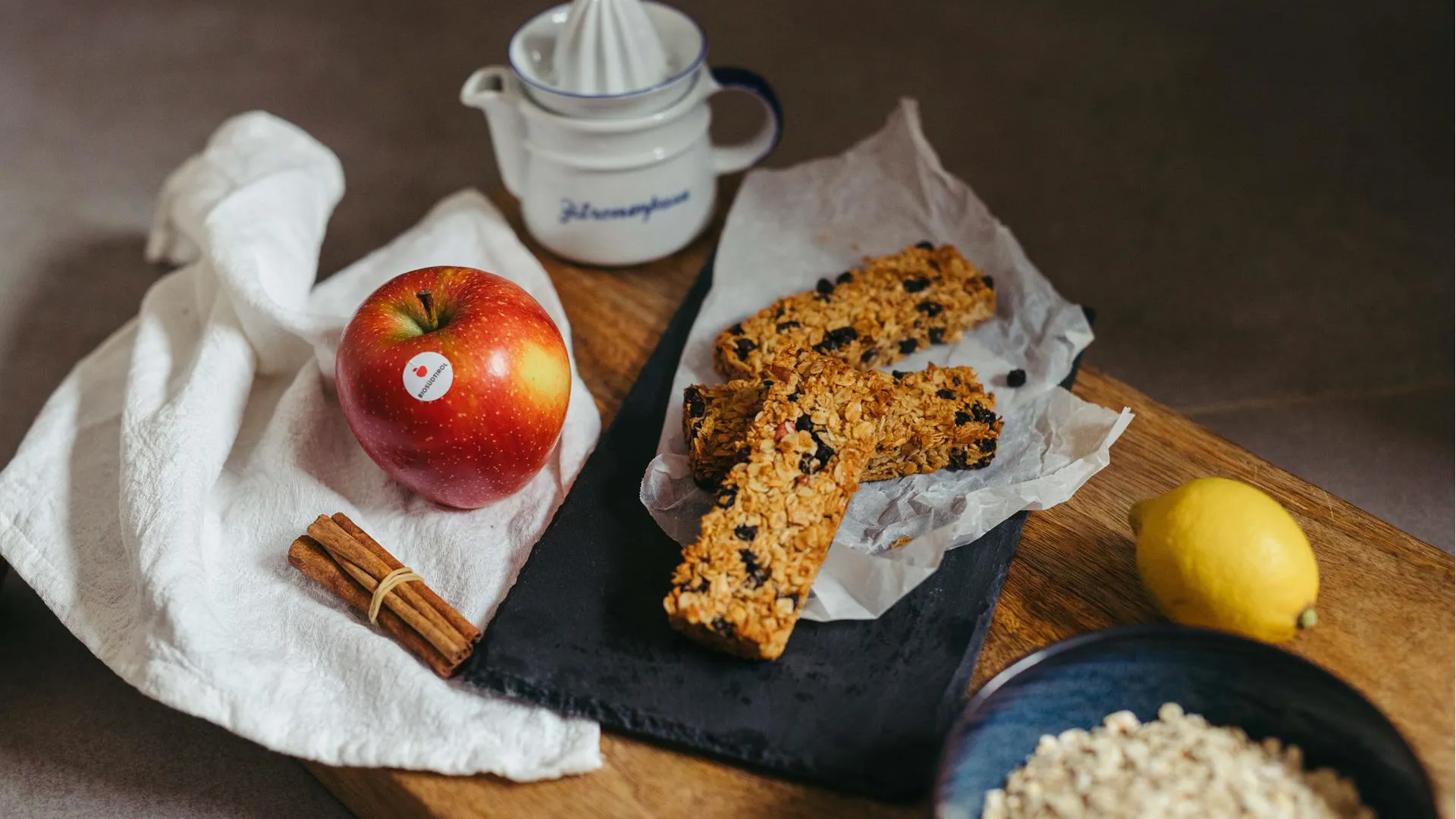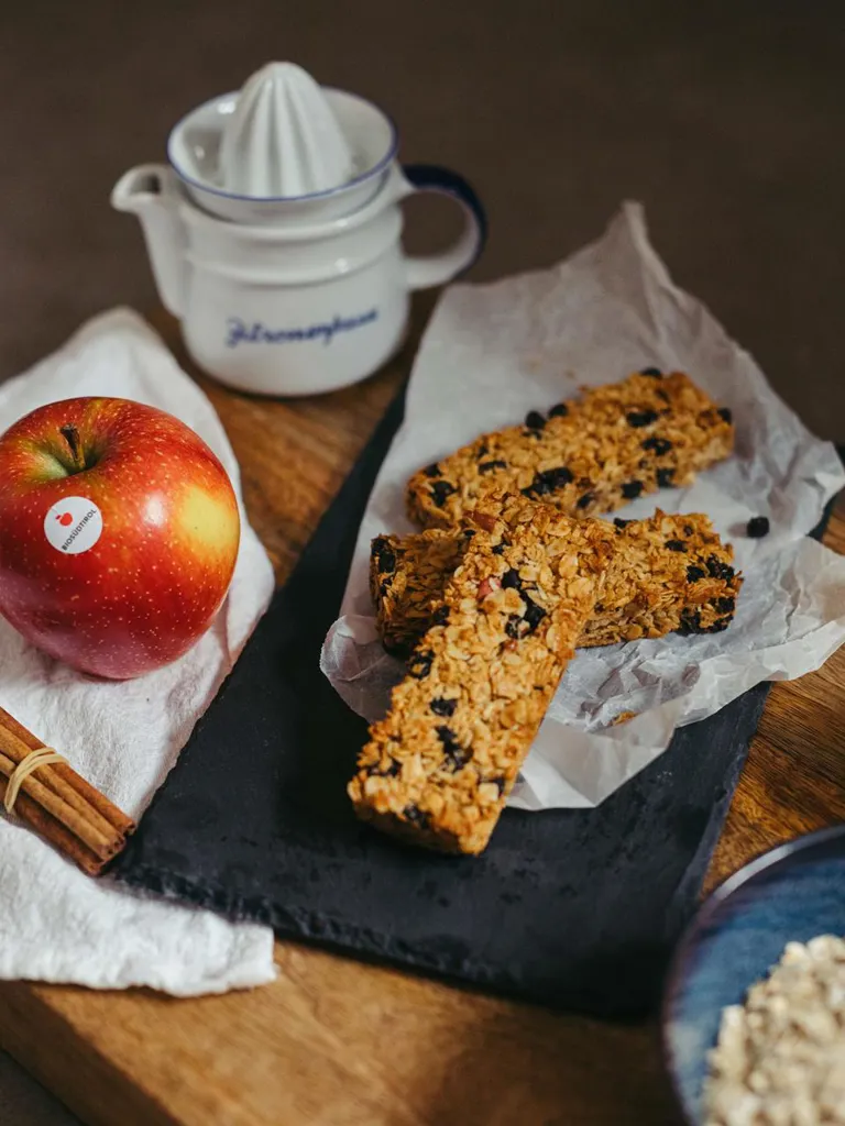 Bio-Bäuerin Sissy serviert: Müsliriegel.