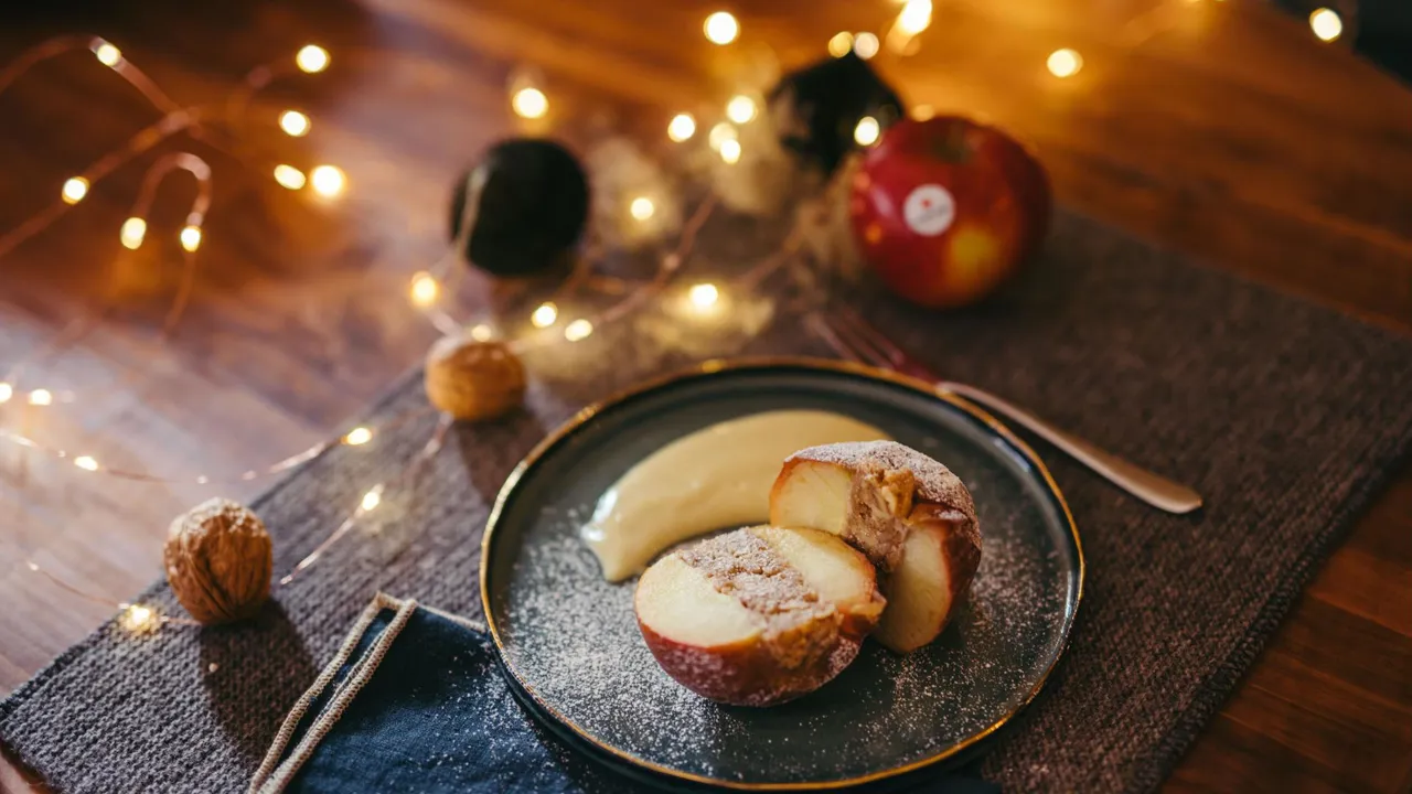 Bio-Bäuerin Sissy serviert: Bratäpfel mit Honig-Marzipan-Füllung und Honig-Vanillesoße