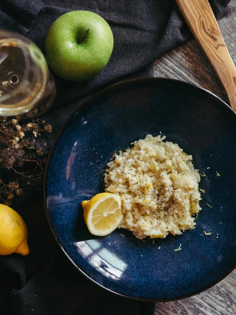 Hauptspeise - 40 Minuten - LeichtBio-Bäuerin Sarah serviert: Apfel-Curry-Risotto.zum Rezept -