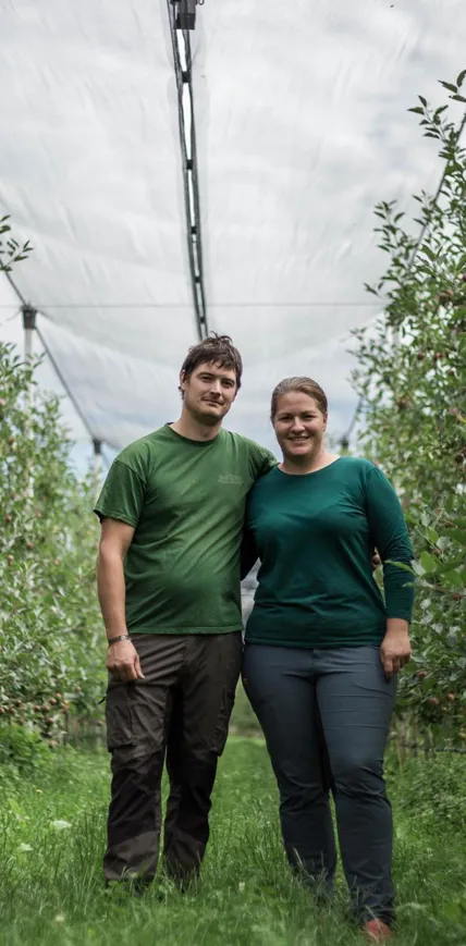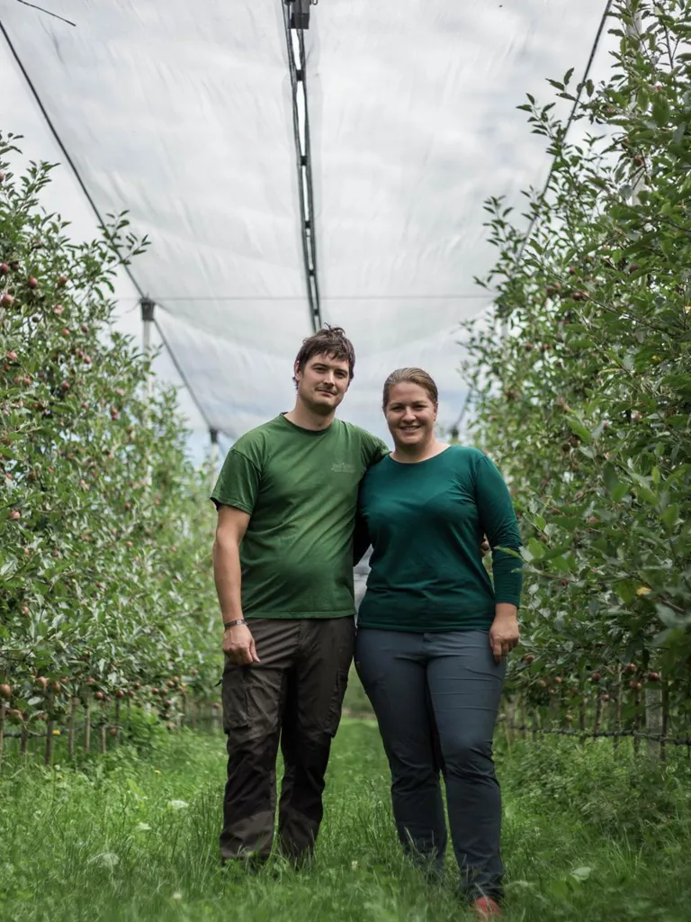 È così che Evi e Martin diventano agricoltori. Durante i corsi di formazione per i frutticoltori, i due si distinguono. A queste iniziative, di solito partecipano uomini esperti con i loro figli: le donne sono una vera rarità, una giovane coppia decisamente un’eccezione. Ma aperti, cordiali e determinati come sono, Evi e Martin si integrano rapidamente nella comunità agricola.