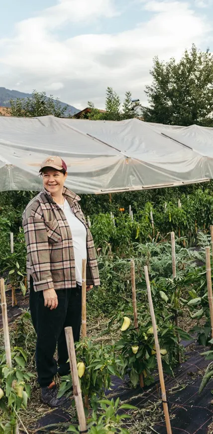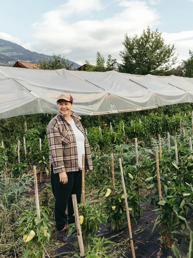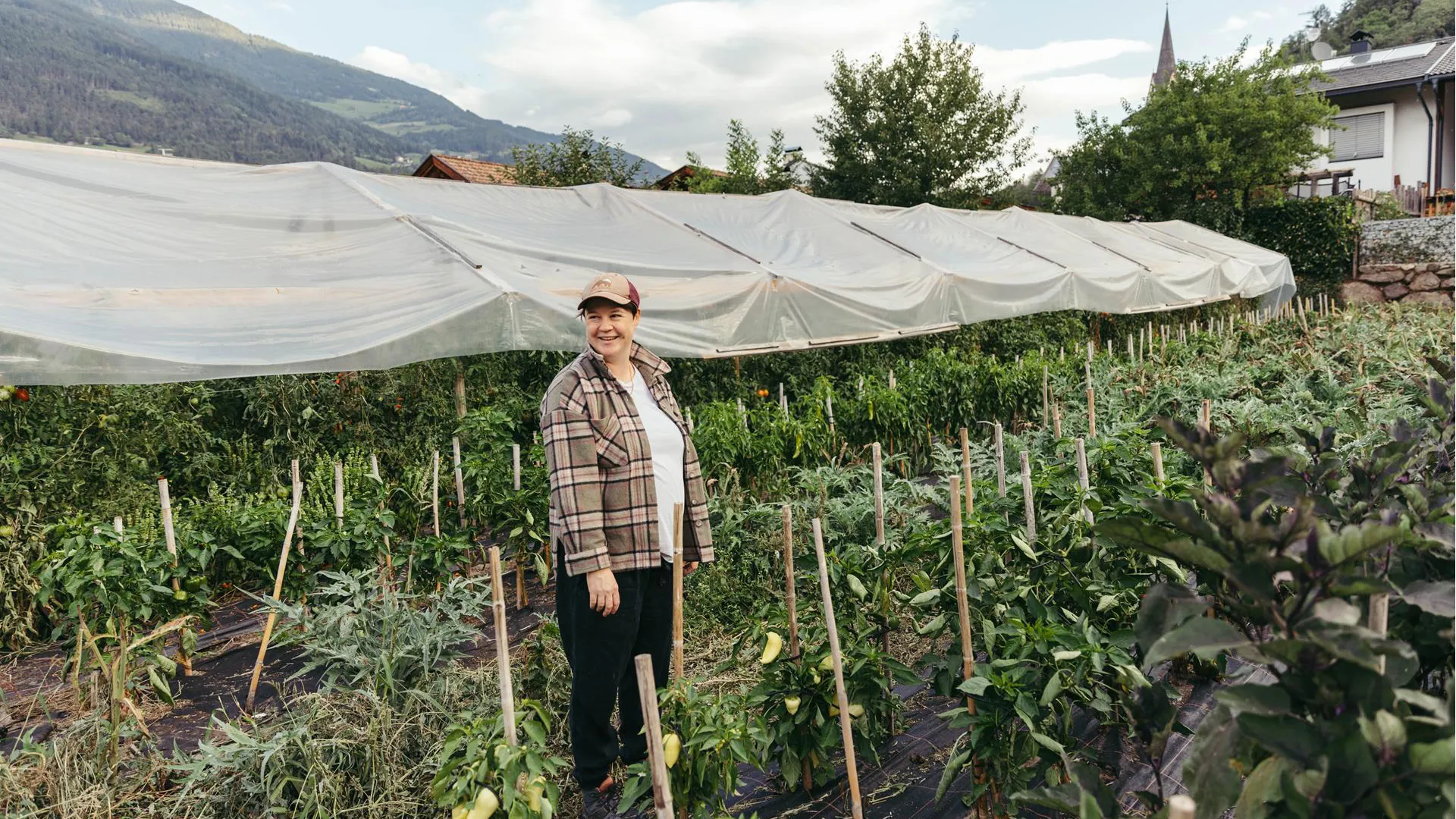 Verena oggi gestisce il maso proprio come faceva il padre una volta. Quando era giovane, si trattava ancora di un’attività piccola: qualche meleto, un paio di mucche, pecore e un campo in cui coltivare la frutta. Poi, come è successo a tanti altri altoatesini, è venuta l’idea di coltivare le mele, ma senza rinunciare alle verdure, pensando in grande. In questo modo si riusciva sia a soddisfare la richiesta dei supermercati della zona, sia a vendere i prodotti per conto proprio.